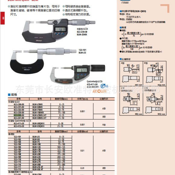 原装日本三丰422-230-30422-260-30薄片端面数显千分尺