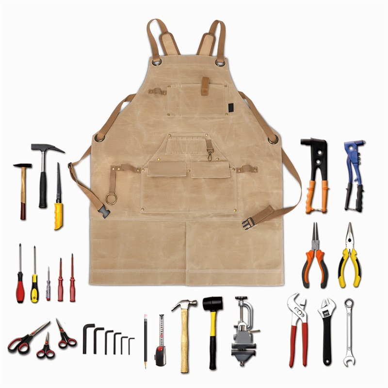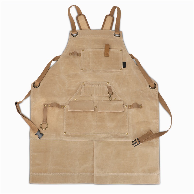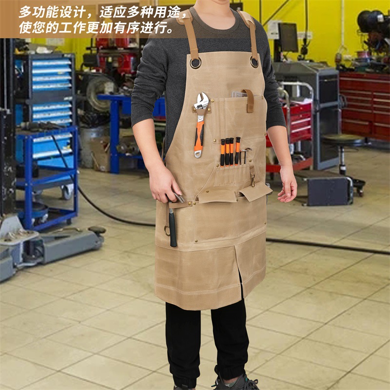 BSCI认证工厂定制多口袋工具围裙园林工具收纳围裙卡其色帆布围裙
