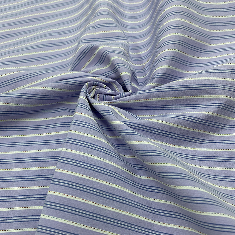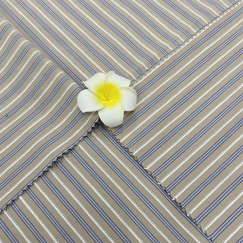 春夏时尚棉锦色织条子布料 厂家批发锦棉经弾彩色条纹衬衫面料