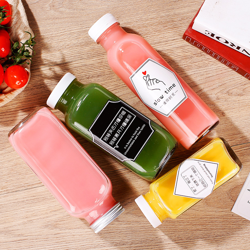 方形冷泡茶玻璃饮料瓶酵素玻璃瓶透明果酒玻璃瓶带盖泡茶玻璃瓶