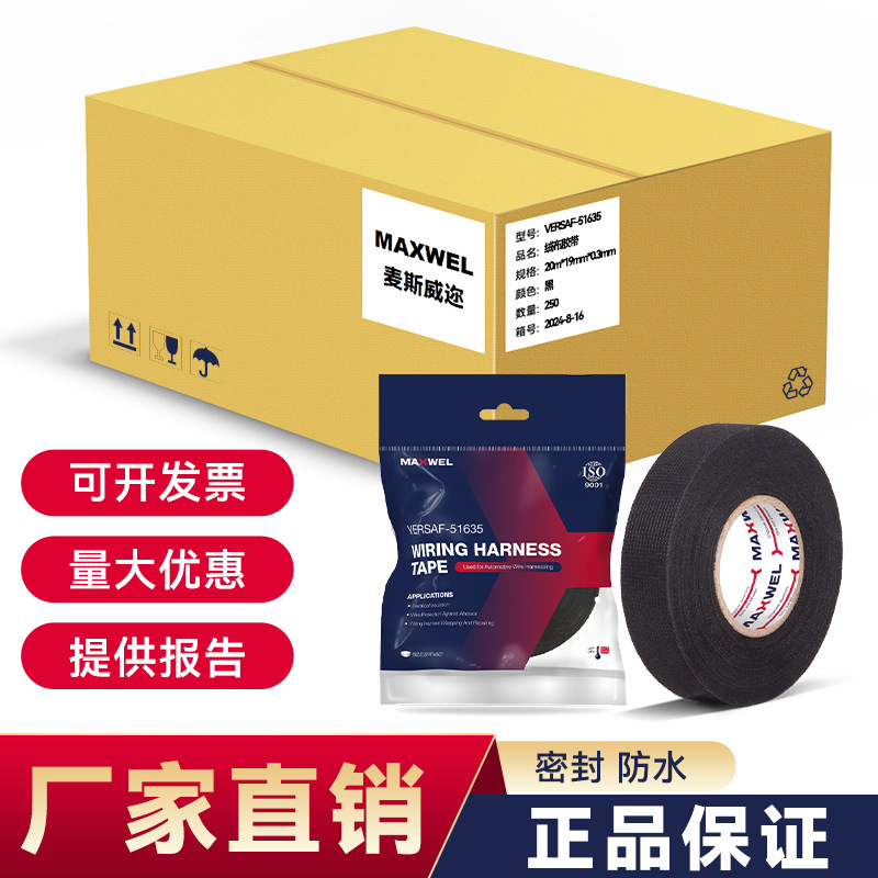 黑色胶布汽车线束带强粘绒布胶带电工高粘防静防震抗压高粘度