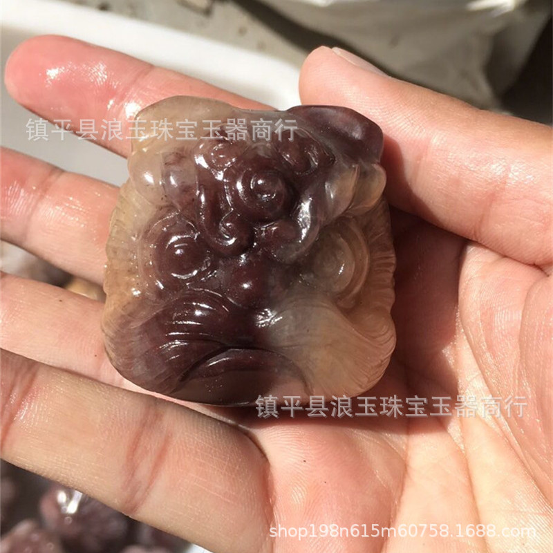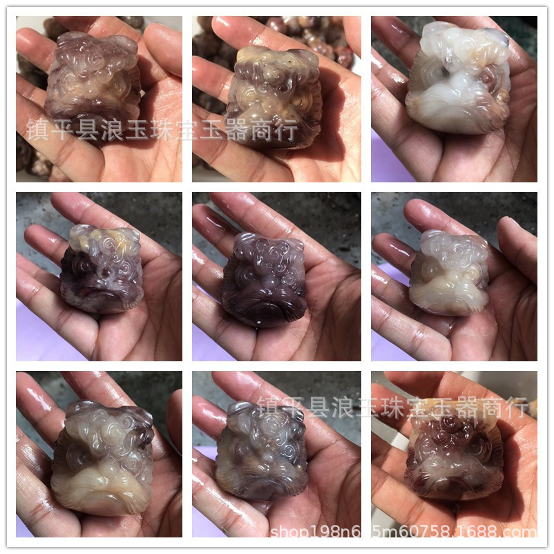 天然玉石新疆金丝玉佘太翠醒狮手把件紫罗兰手持文玩手串配饰直播