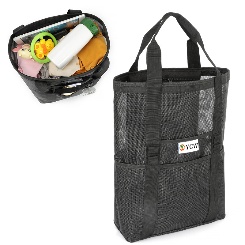 黑色手提沙滩袋海边沙滩包多功能沙滩网手提包
