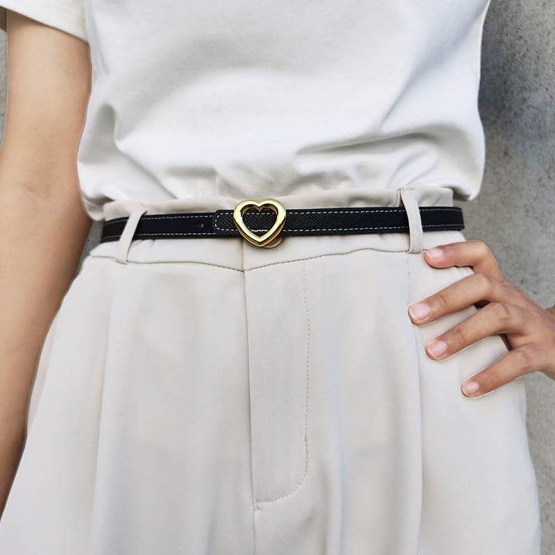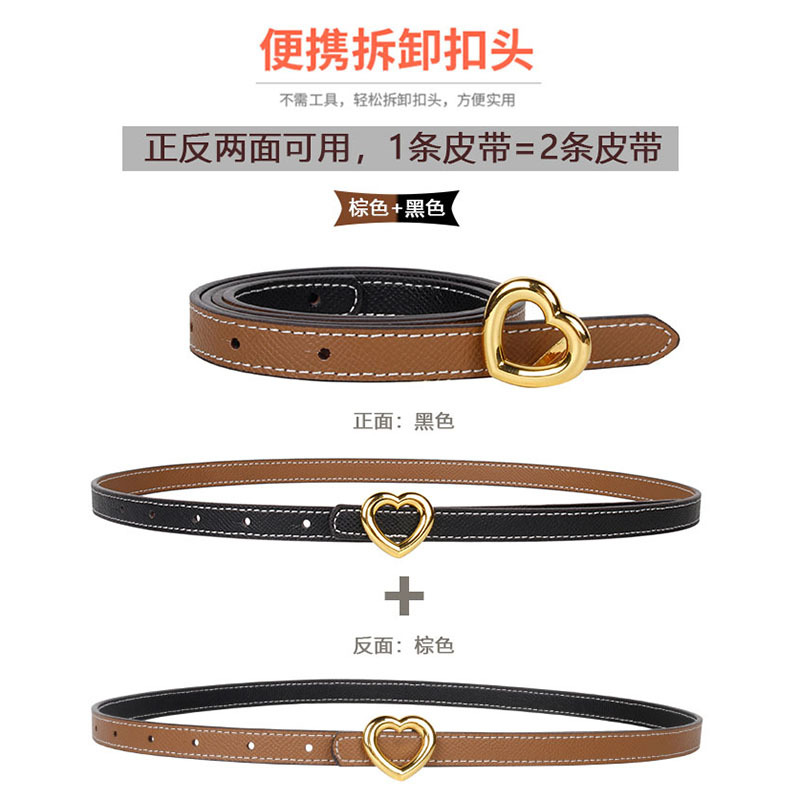 H家细腰带女百搭装饰配连衣裙牛仔裤凯莉kelly双面真皮爱心小皮带