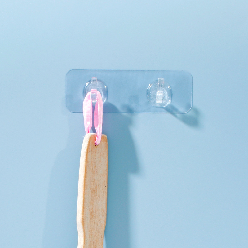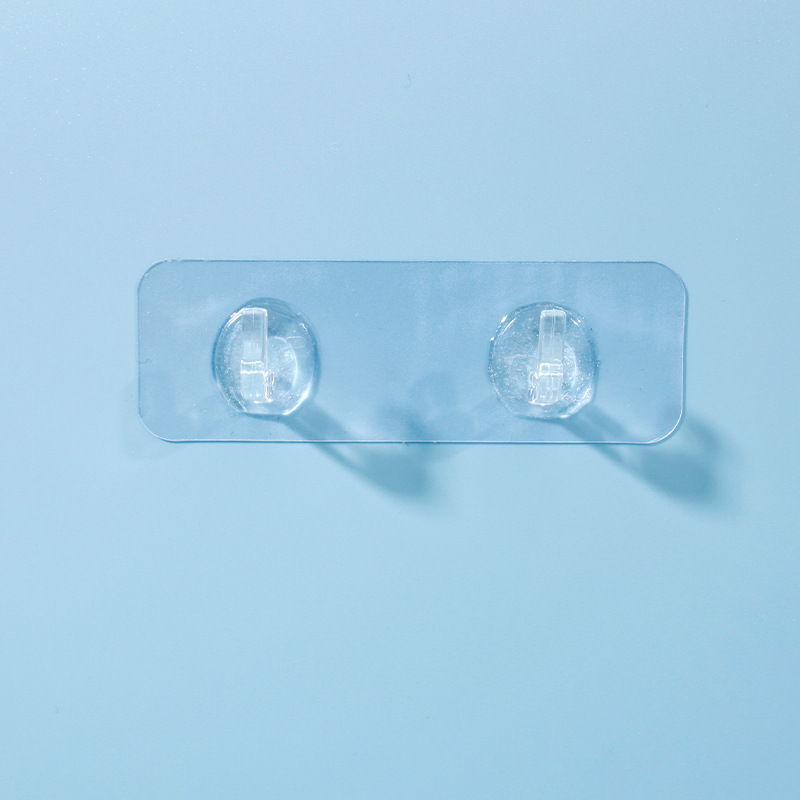 家用背胶连排牛角钩 门后浴室置物钩 透明黏胶双头挂钩现货批发