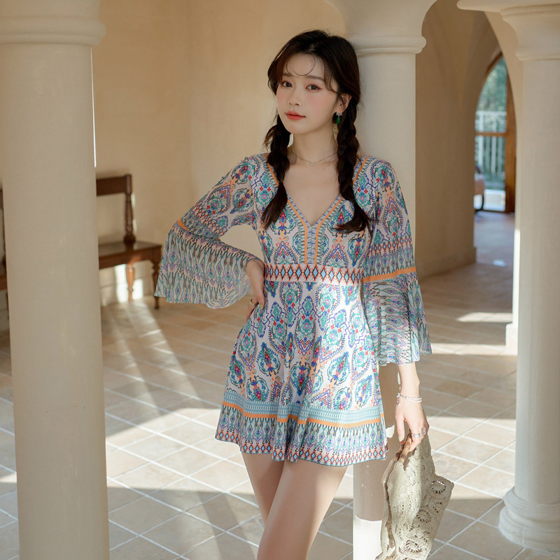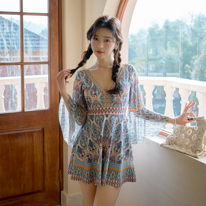 2025新款情侣大码韩版ins风泳衣温泉聚拢大小胸连体裙式平角泳装