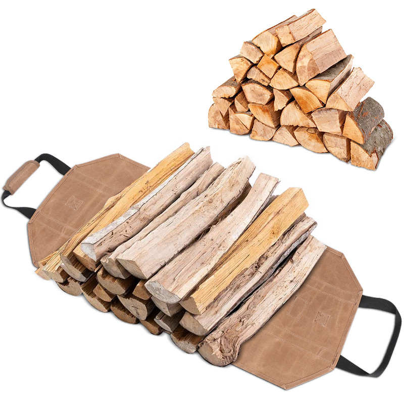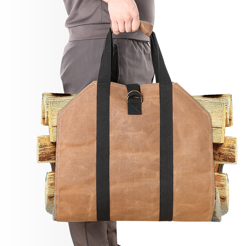 过蜡帆布柴火袋卡其色柴火袋 一片式帆布防污柴火袋