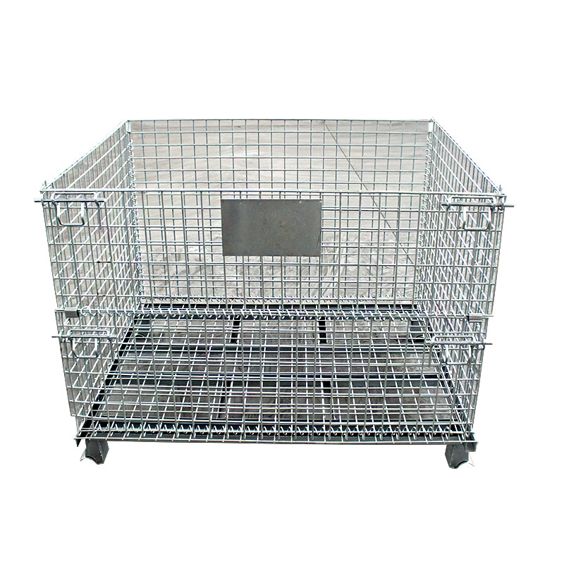 D2物流铁框折叠式仓储笼金属网格箱移动堆垛料箱仓库发货周转铁笼
