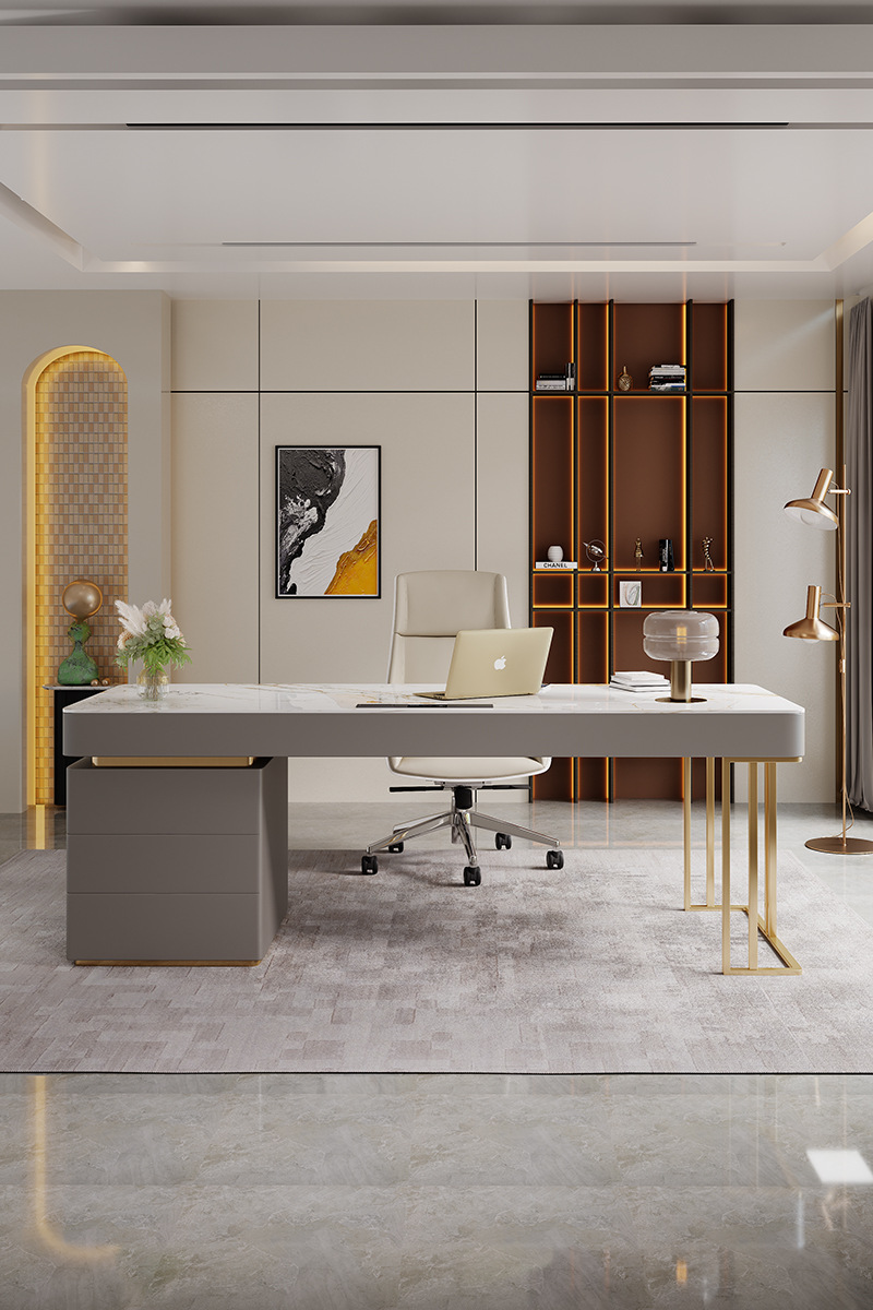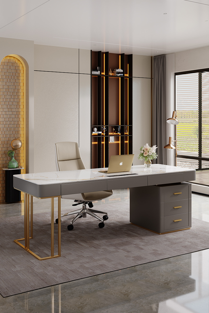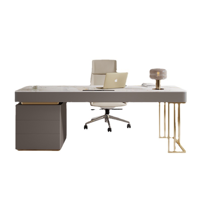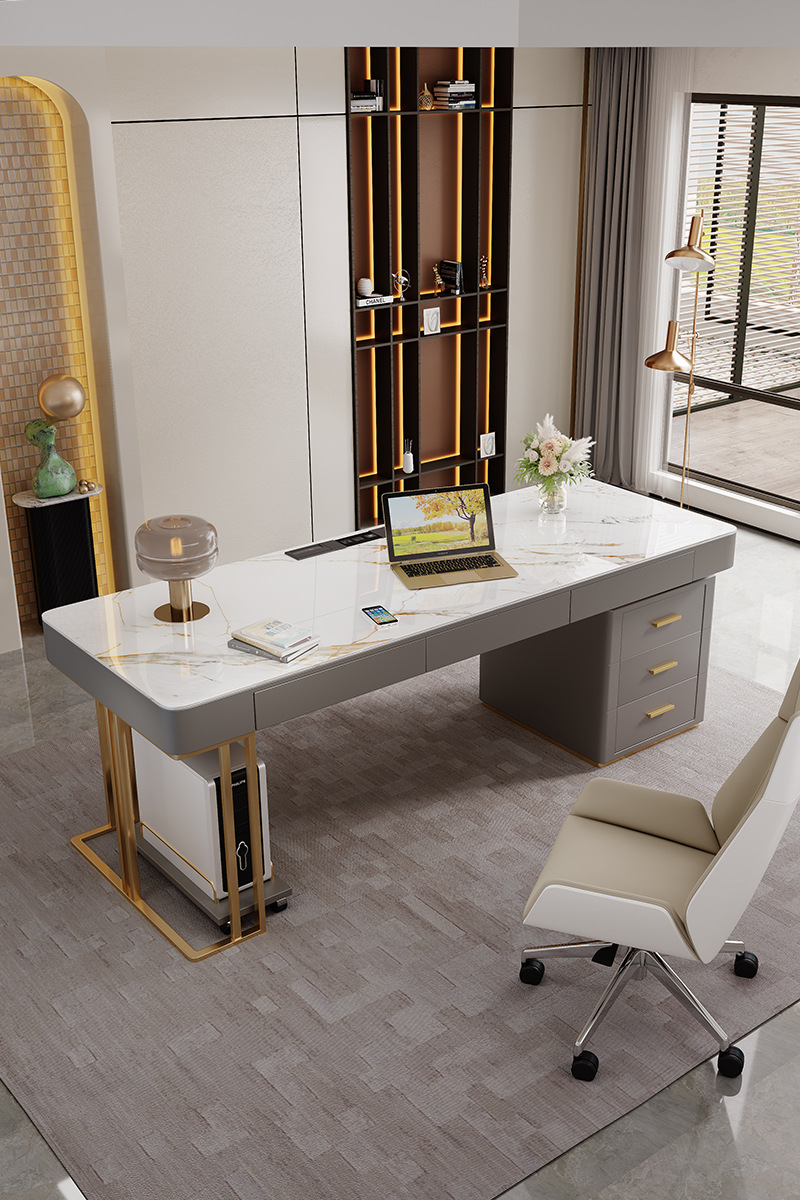 意式岩板书桌抽屉轻奢简约写字台组合办公桌家用电脑桌椅台式书柜