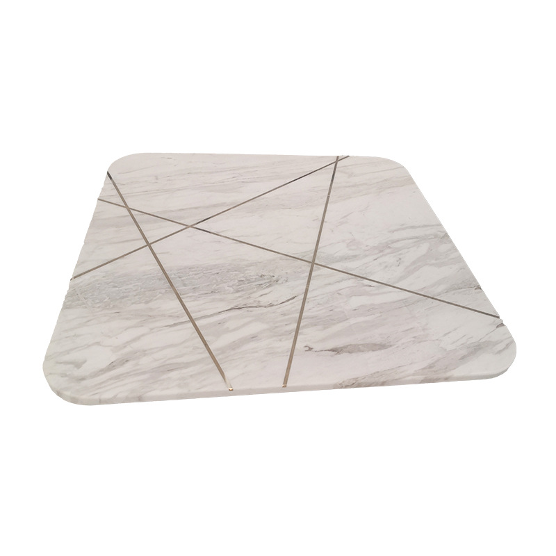 嵌铜条大理石桌面 茶几餐桌桌面电视柜面板灶台面异形板材定制