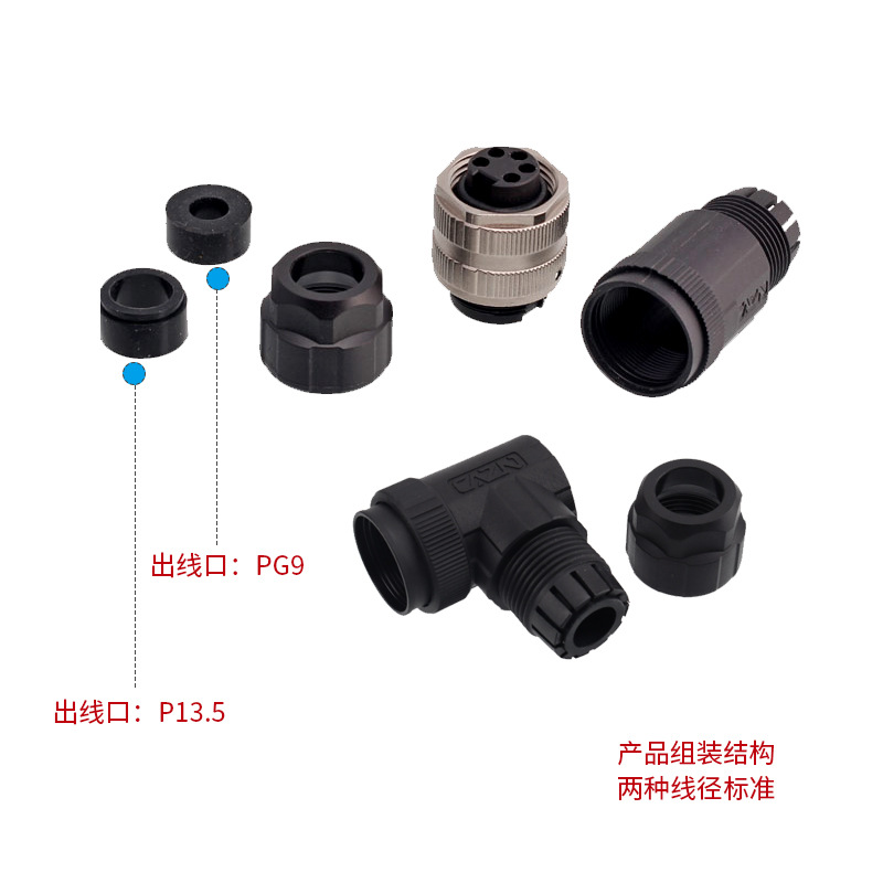 | 规格 | 7/8 弯式孔型塑胶组装式插头 3芯 | 规格 | 7/8 弯式孔型塑胶组装式插头 4芯 |