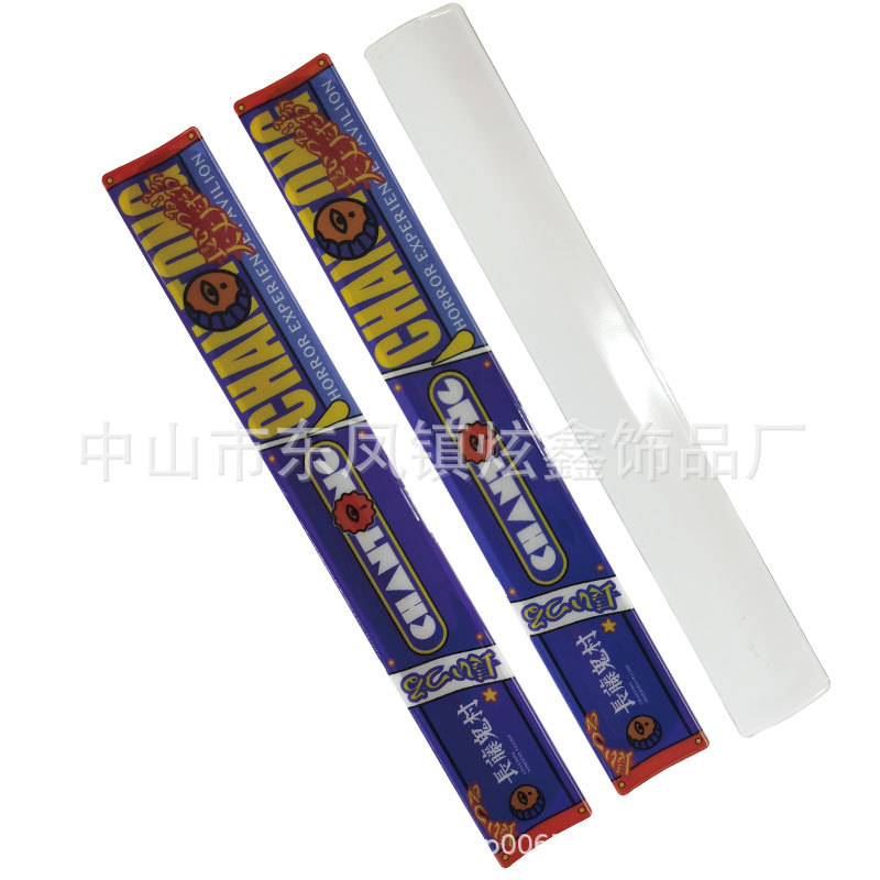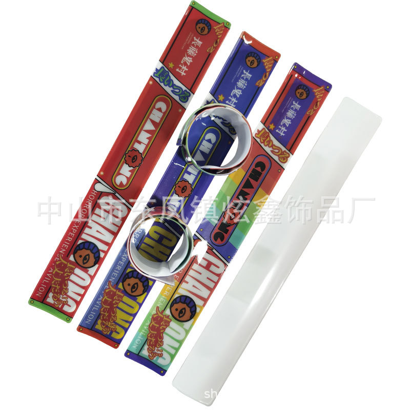 工厂生产透明PVC满版彩印卡通动漫拍手带 植绒布反光啪啪圈手环