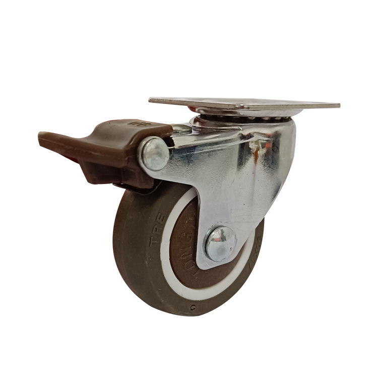 批发镀铬工业脚轮稳固静音顺滑轮带刹车脚轮2寸手推车万向轮子