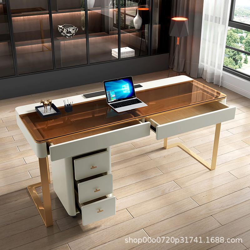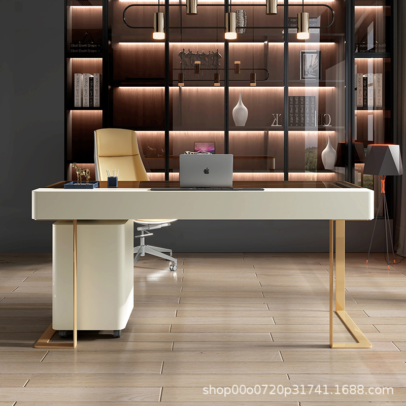 意式极简轻奢书桌奶油风小户型书房写字台办公桌高档学习桌电脑桌
