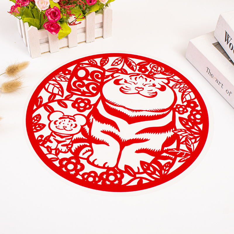 2026马年高档全红植绒窗花红色新年装饰彩色春节福字贴窗贴