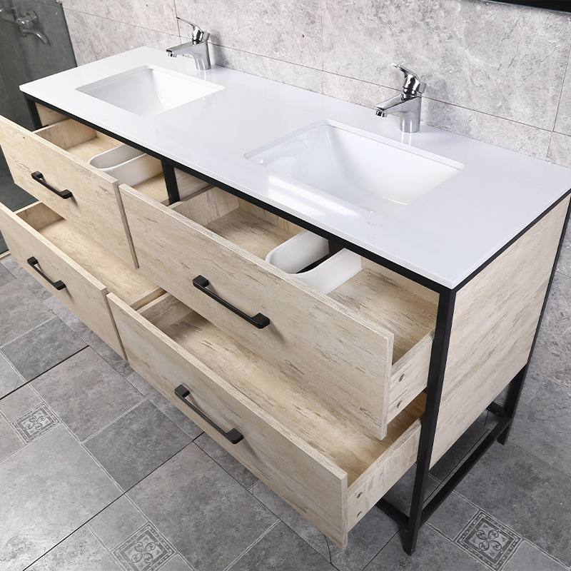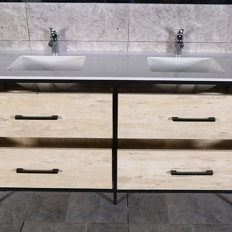 落地原木色浴室柜陶瓷一体盆浴室柜镜柜现代简约浴室柜组合浴室柜