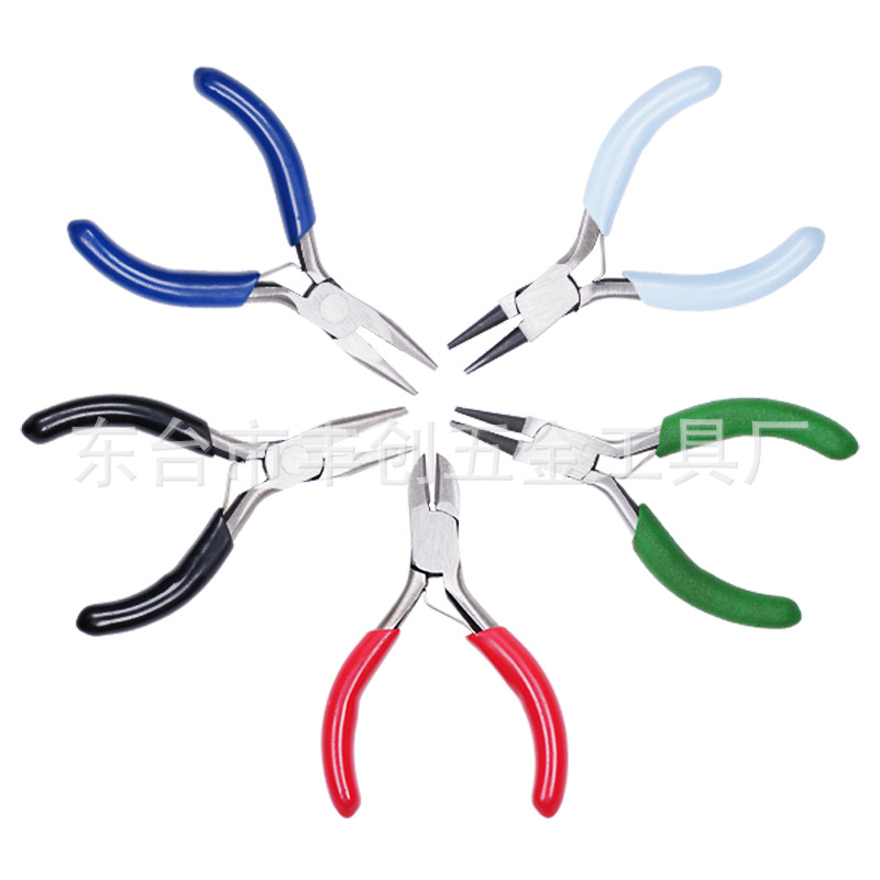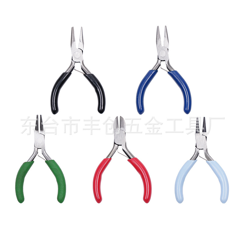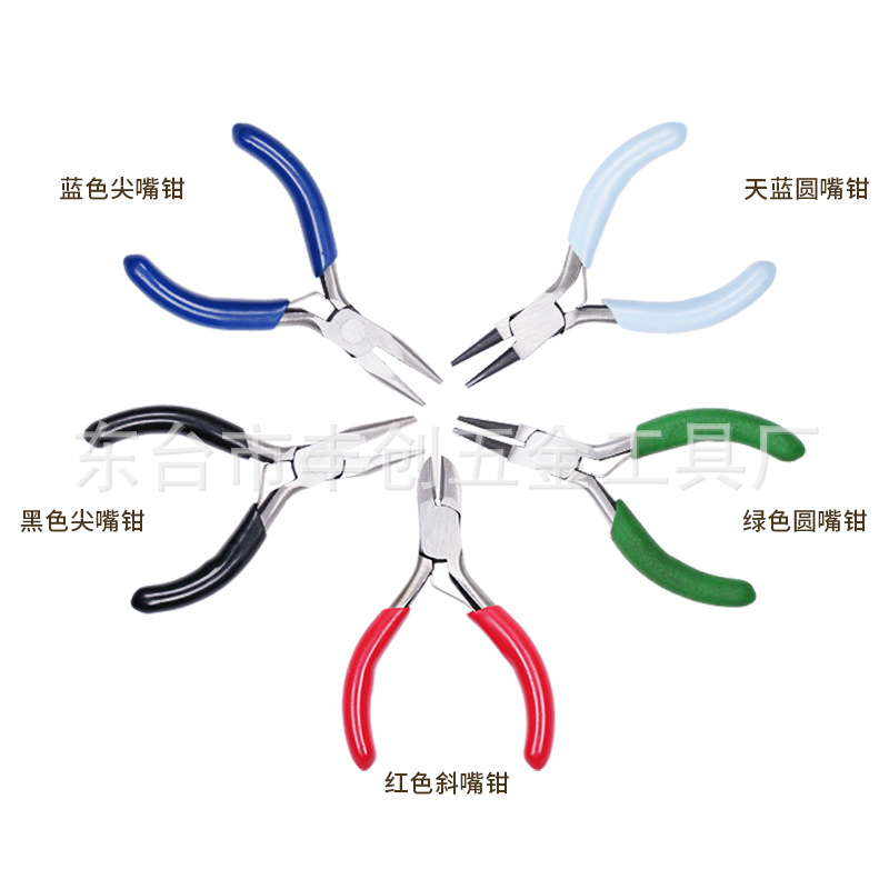 现货 3寸彩色五件套首饰手工尖嘴钳 圆嘴钳 斜嘴钳 迷你3寸小钳子