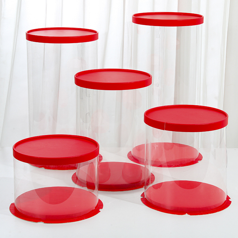 厂家红色透明蛋糕盒4寸6寸8寸加高烘焙蛋糕包装盒生日蛋糕盒批发