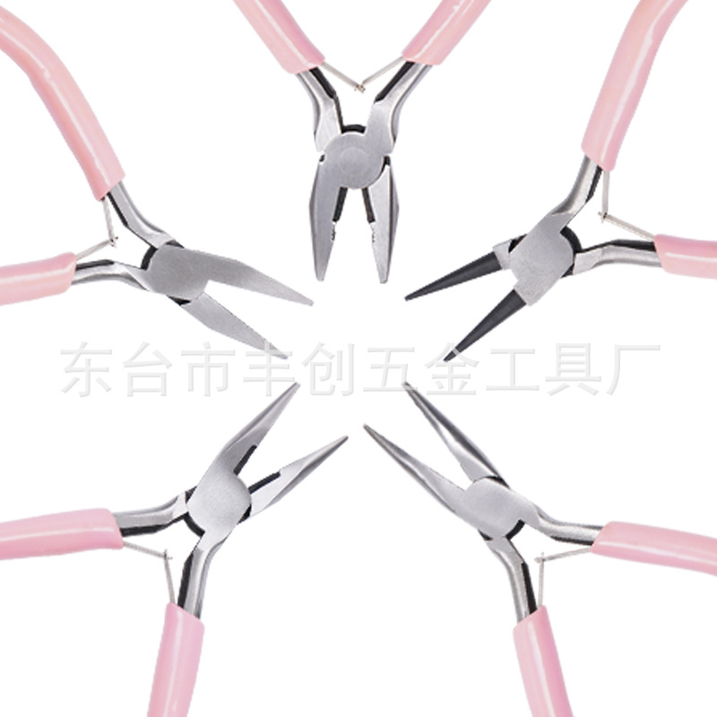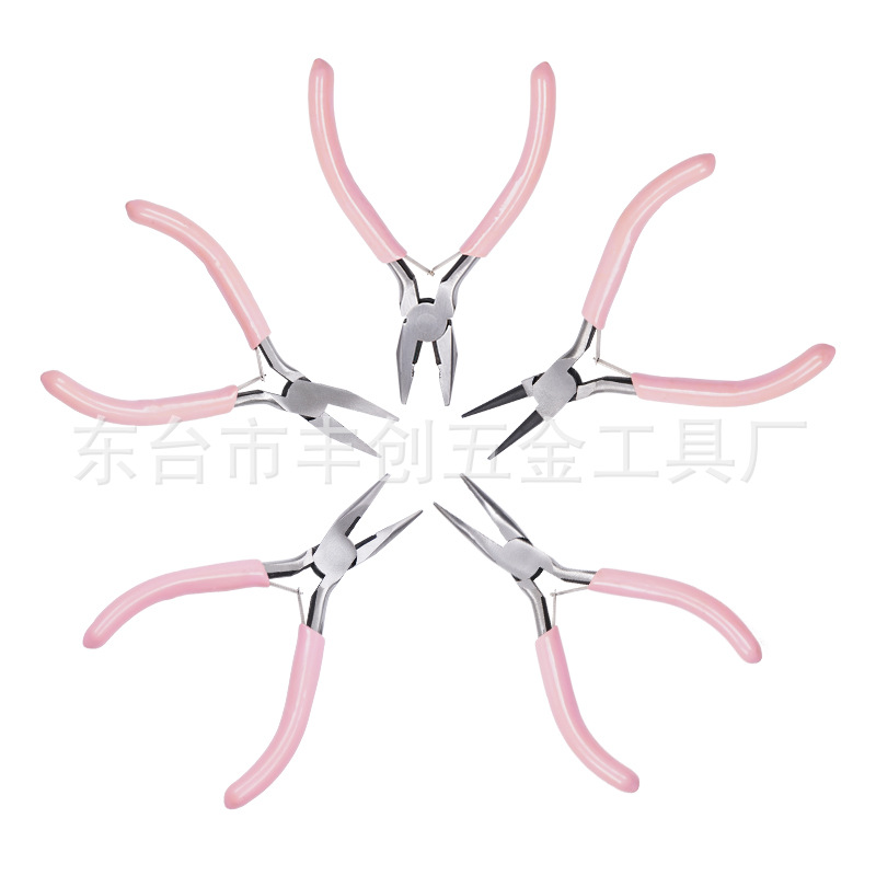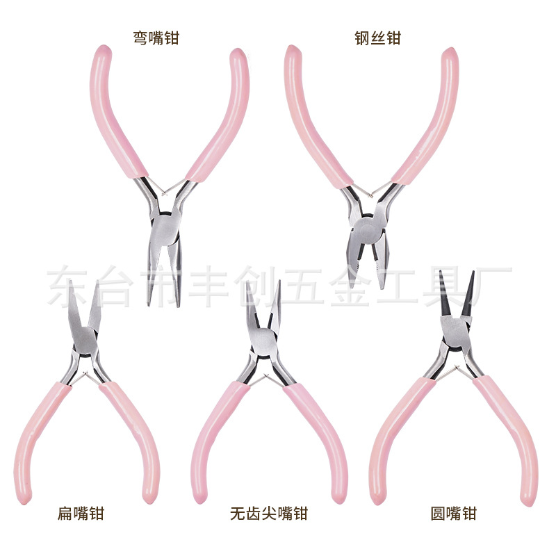 手工饰品工具4.5寸粉色五件套弯嘴钳尖嘴钳圆嘴钳钢丝钳扁嘴钳