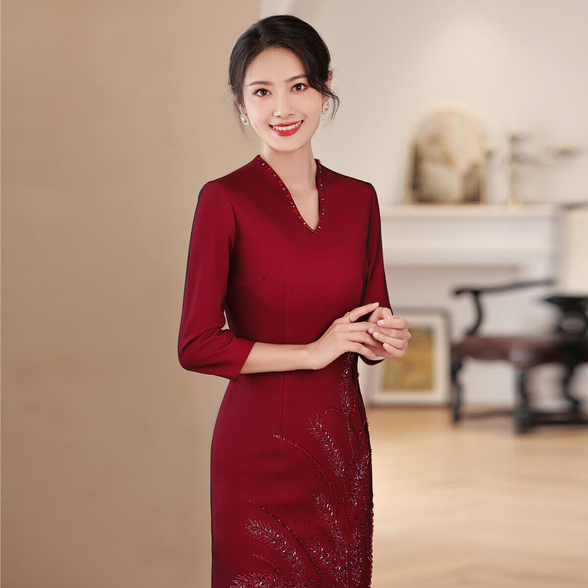 主面料成分2 | 氨纶 | | 旗袍长度 | 中旗袍 |