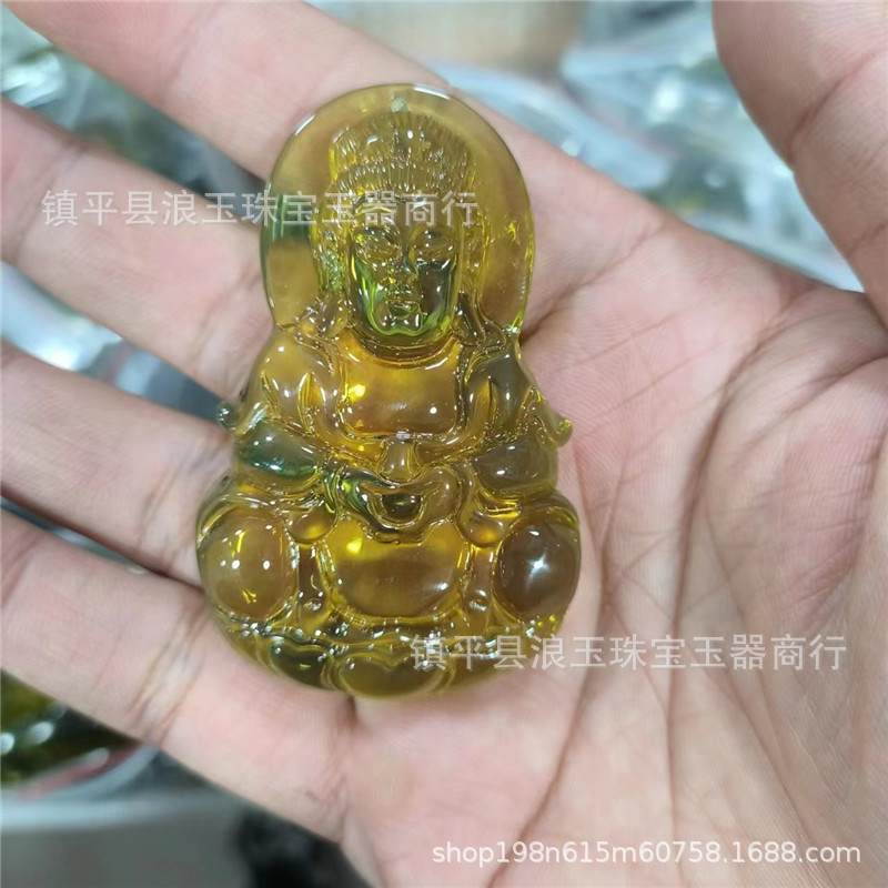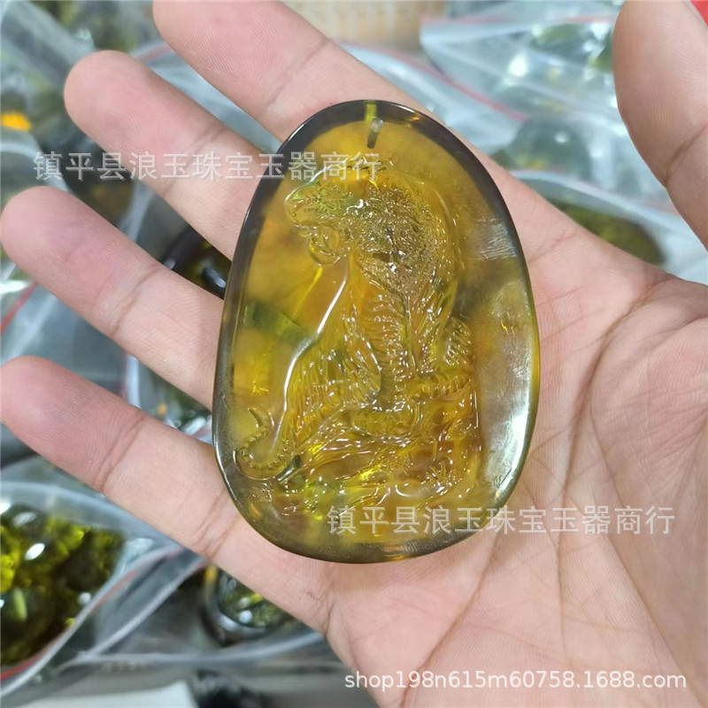 厂家批发二代琥珀蜜蜡荧光浮盐水手把件挂件吊坠直播货源