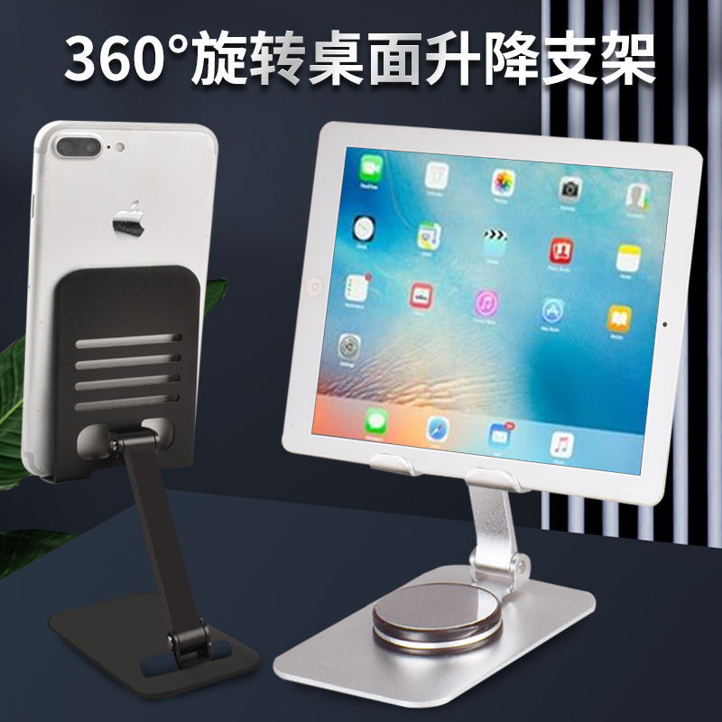镜面金属合金支架360度可旋转桌面支架直播懒人手机平板支架