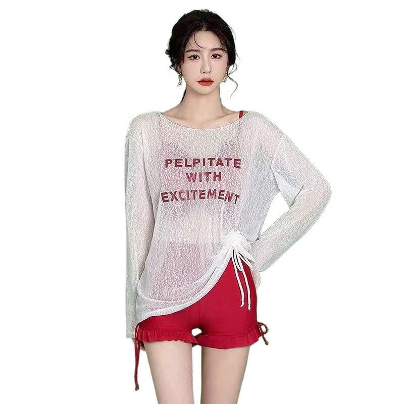 分体泳衣女2025新款网红风温泉遮肚显瘦保守游泳衣三件套保守泳装