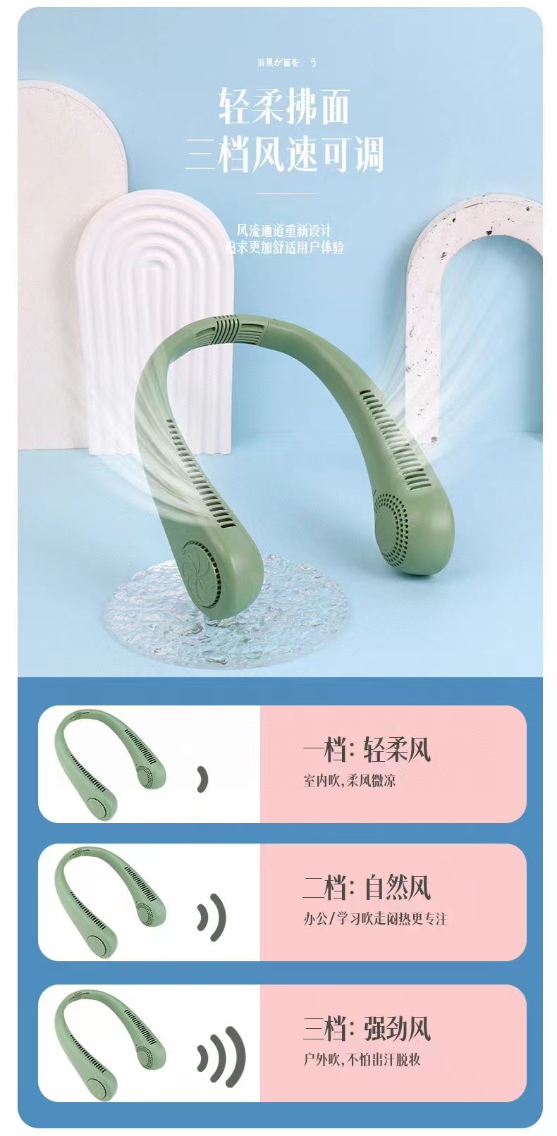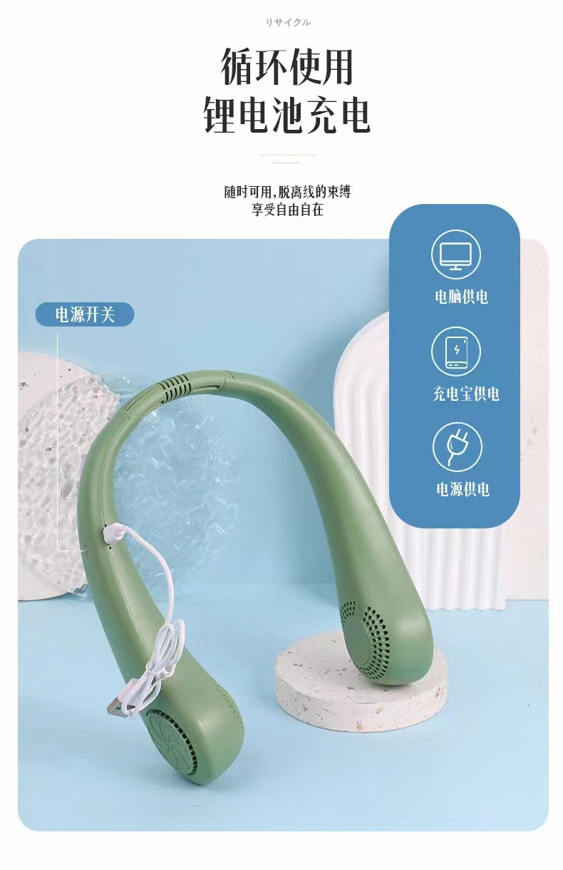 新款挂脖风扇USB充电便携式小风扇学生办公运动无叶挂脖风扇