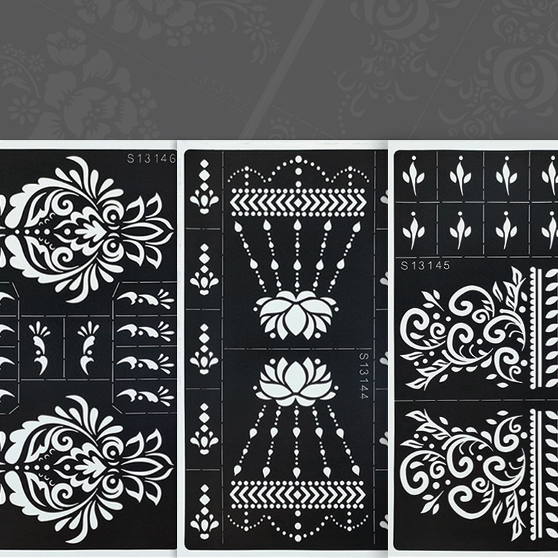 跨境海娜手指纹身模板绘画镂空精细小图案中东印度纹身贴TATTOO