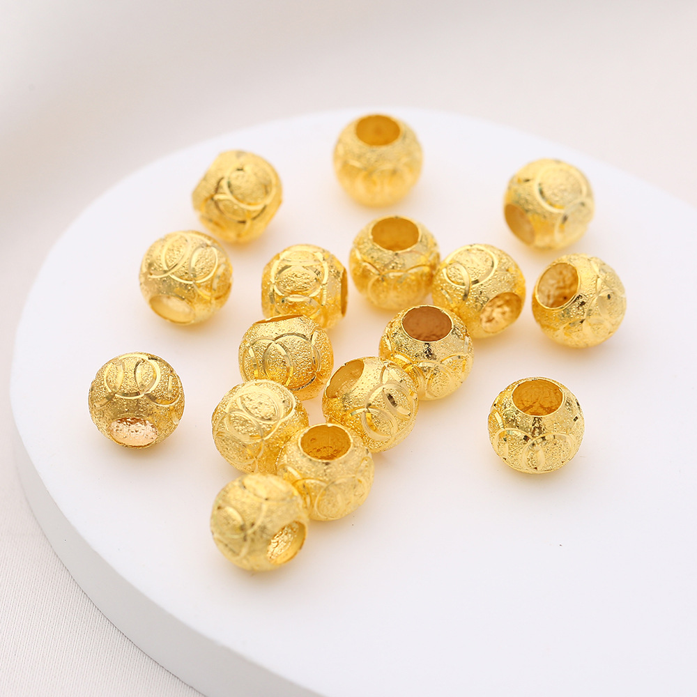 新款8mm磨砂车花珠大孔铜制隔珠通孔磨砂珠diy手串手链串珠材料