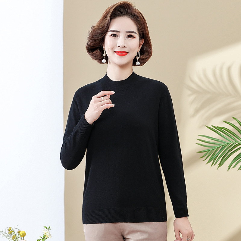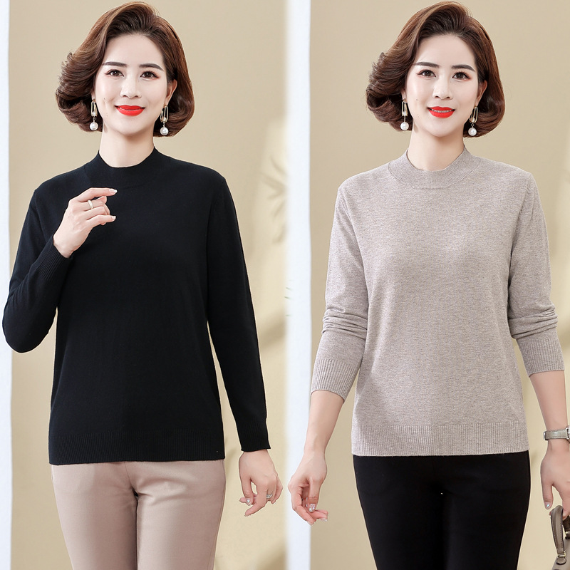 春秋季薄款时尚百搭打底衫中老年妈妈装纯色套头宽松大码女士针织