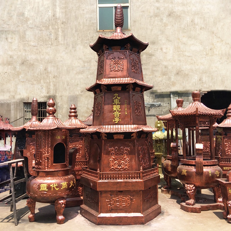 室外寺庙塔炉六角焚经炉香炉铜铸铁焊铁三多层烧纸炉化宝炉大香炉