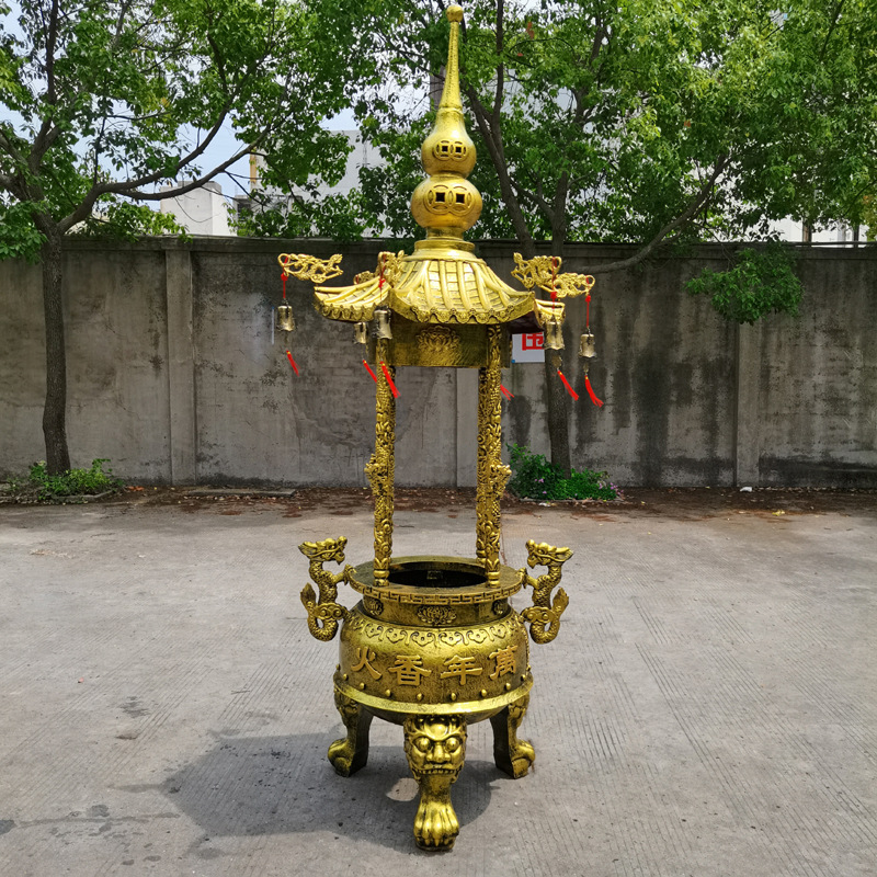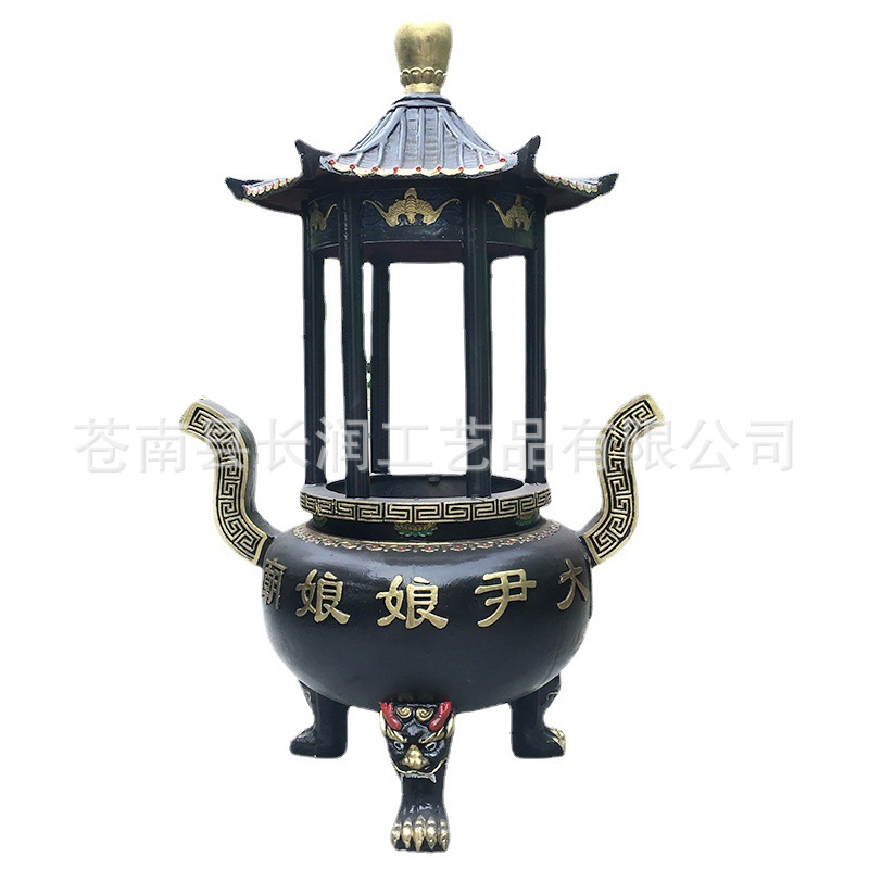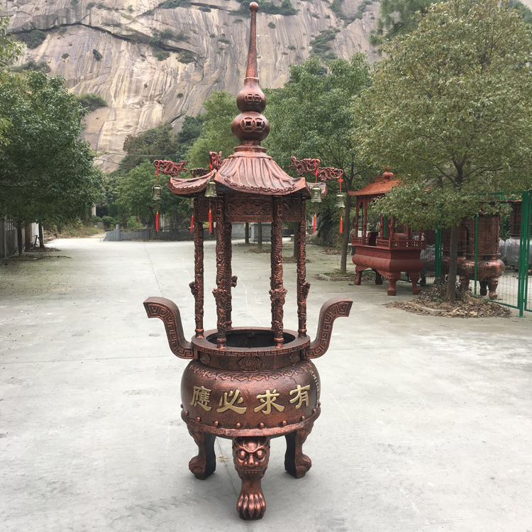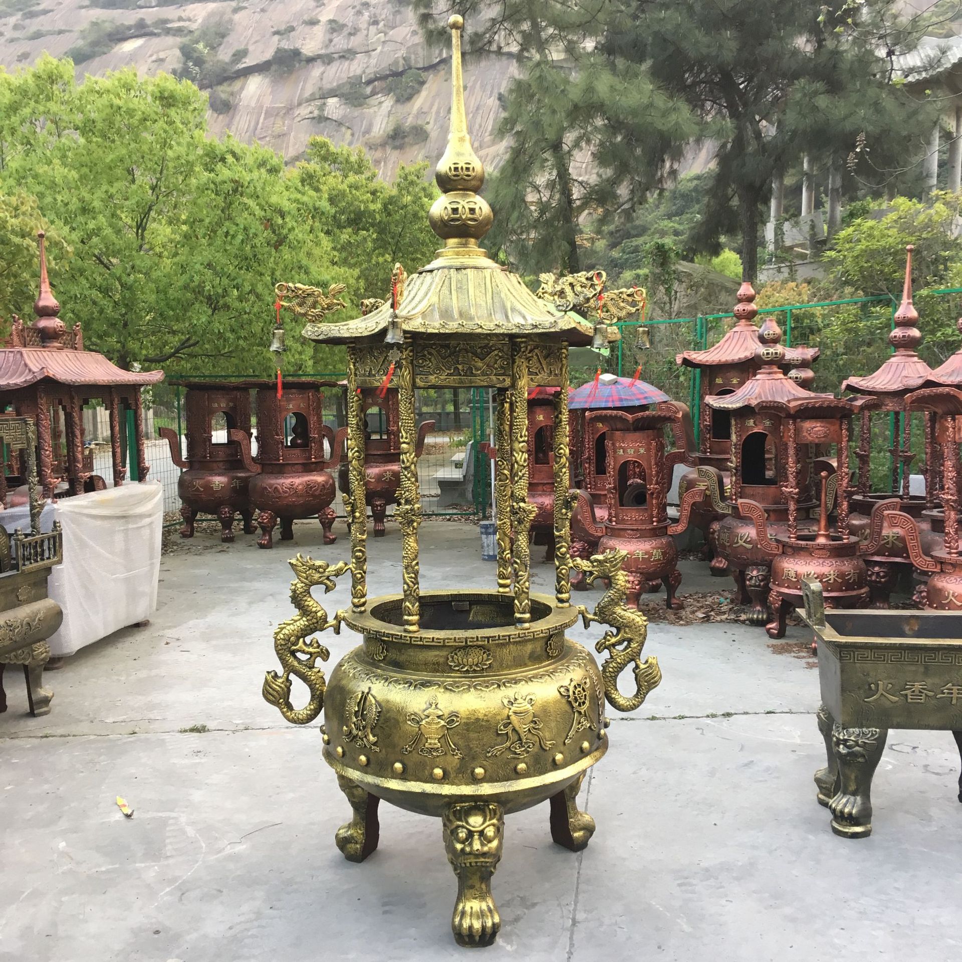 户外寺庙铸铁大香炉带盖圆形六龙柱宗祠墓地露天供佛纯铜插香炉