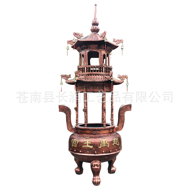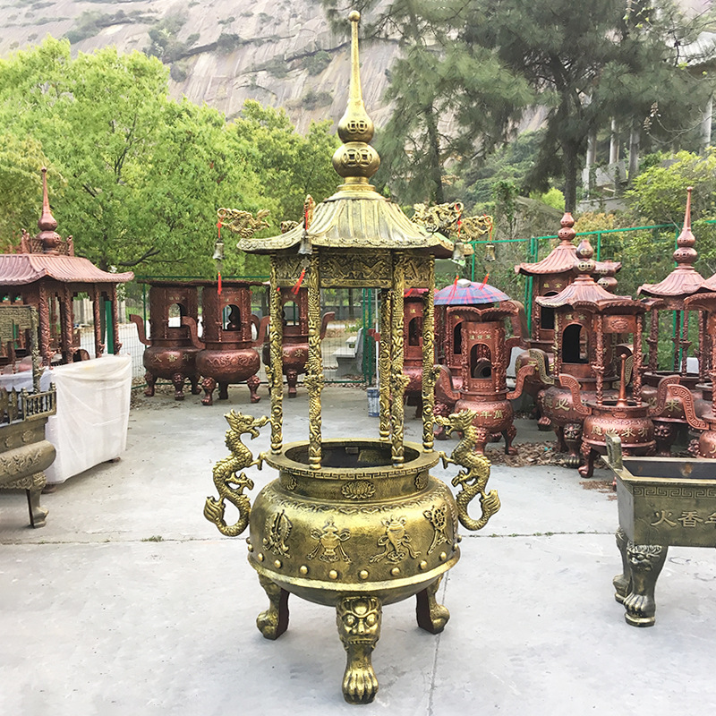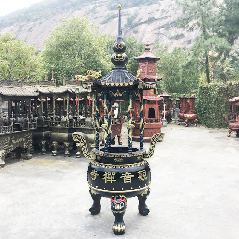 户外寺庙带盖圆形六龙柱铸铁大香炉宗祠祠堂露天供佛纯铜插香炉