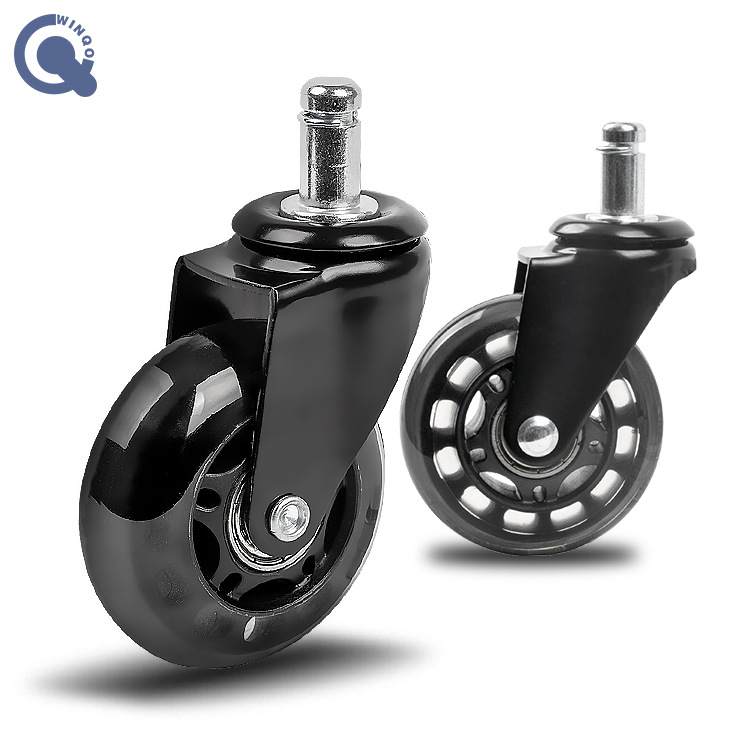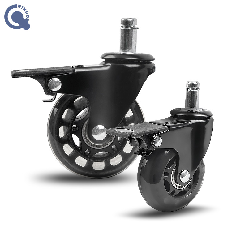 PU轮子2.5寸家具脚轮静音黑聚氨酯材料平板卡簧插杆螺丝万向轮