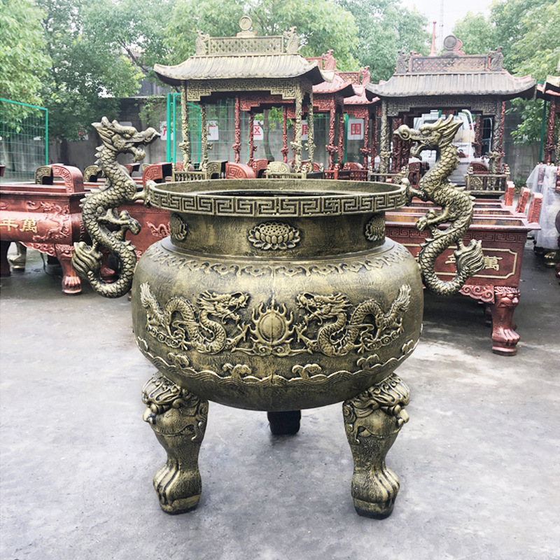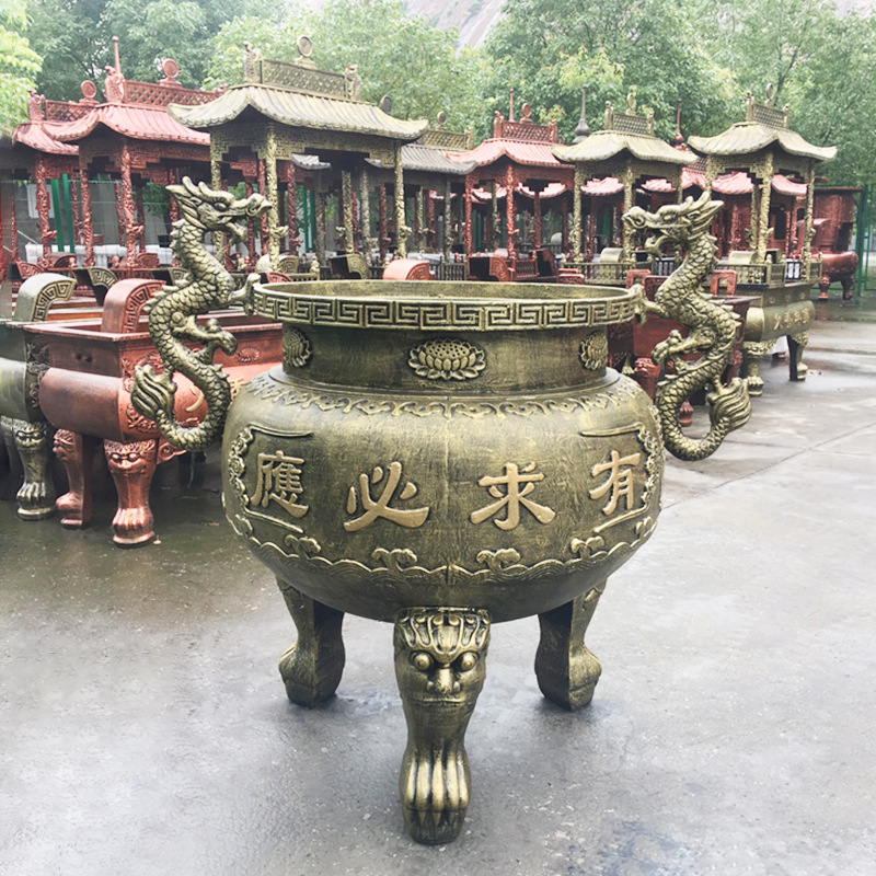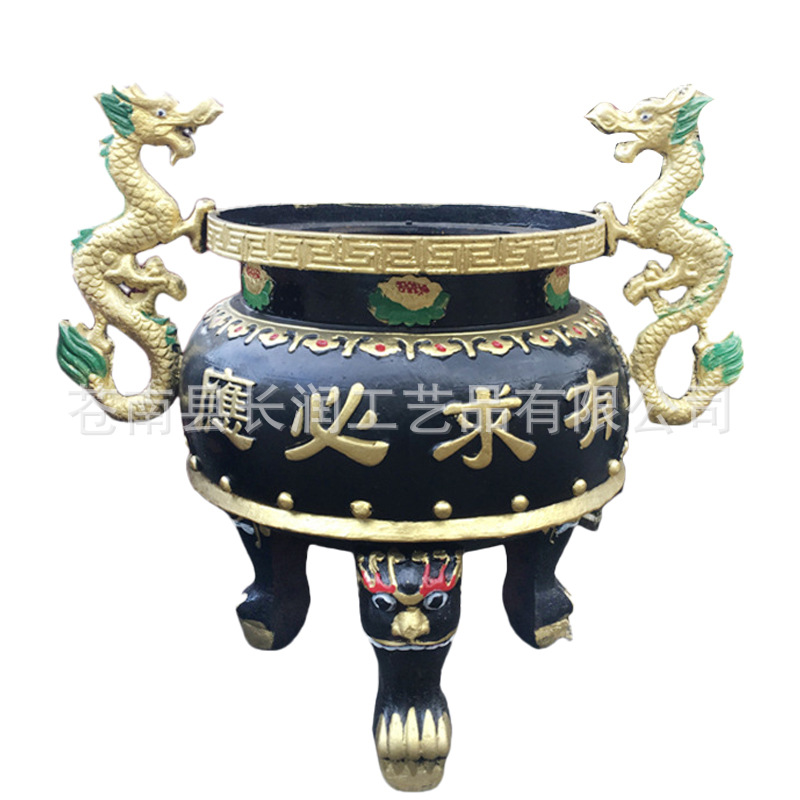 直供寺庙大型圆形双龙耳平口香炉可铜制铸铁聚宝盆道观祠堂摆件