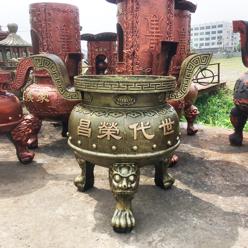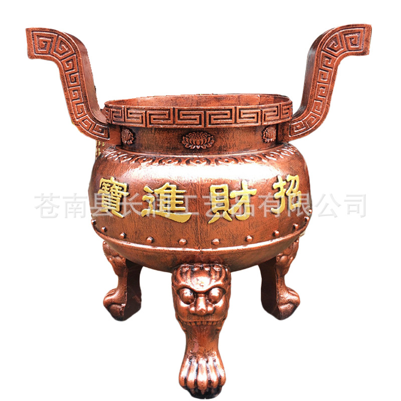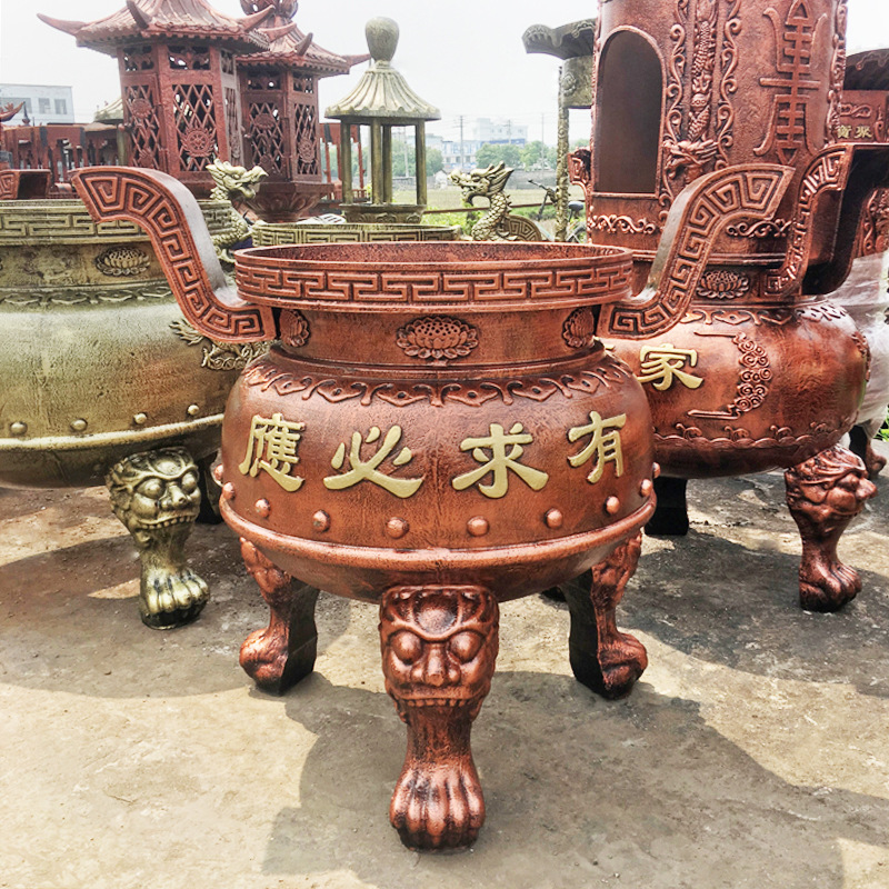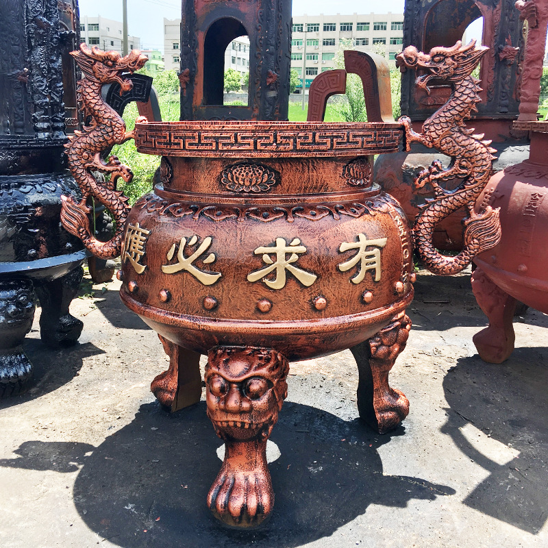 铸铁圆形平口香炉 大型圆口大香炉 寺庙公祠龙耳平口香炉厂家