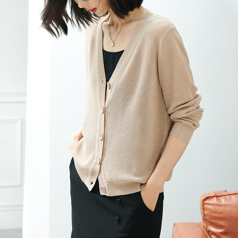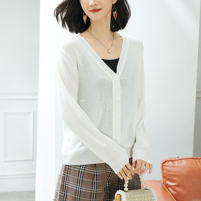 薄款针织开衫女2023新款薄外套外V领小开衫空调衫女打底透气清凉