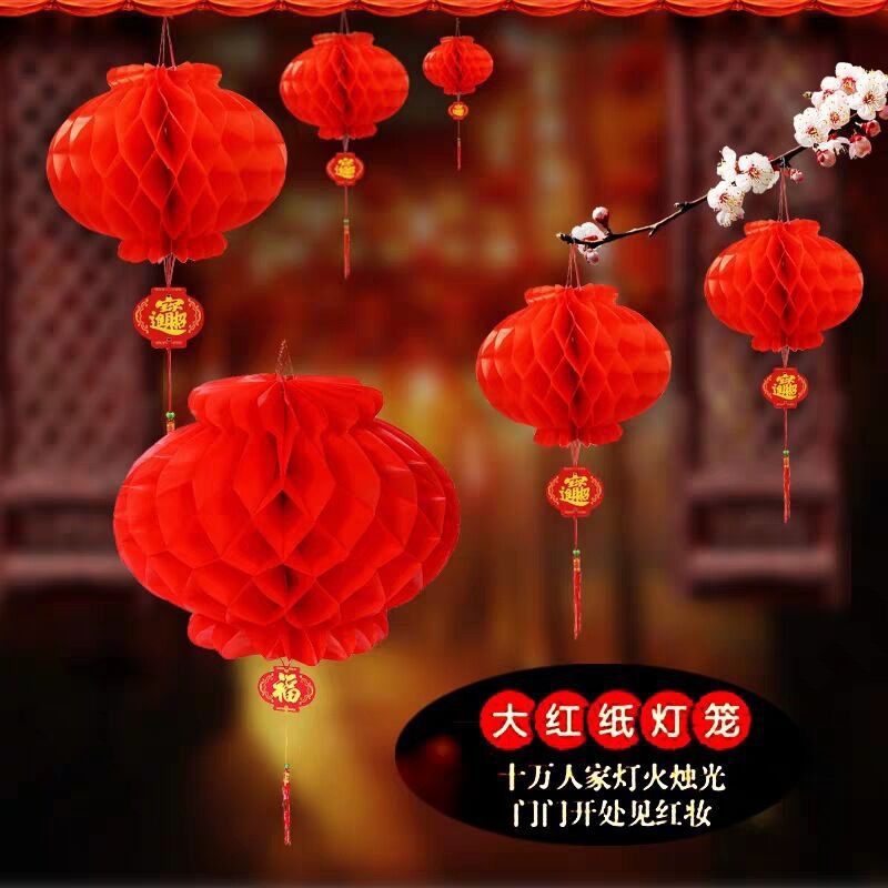 蜂窝灯笼塑纸灯笼小红灯笼连串挂饰结婚新年春节商场开业庆典装饰