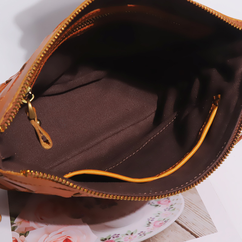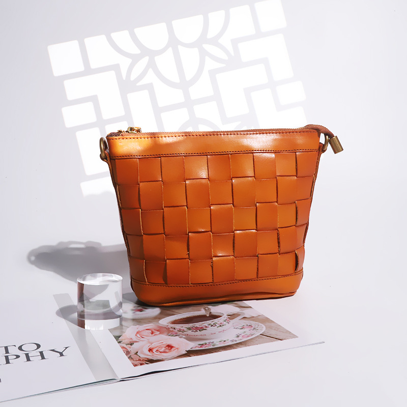 新款复古编织斜挎女包 头层植鞣皮手工水桶包 大容量女士手提包包