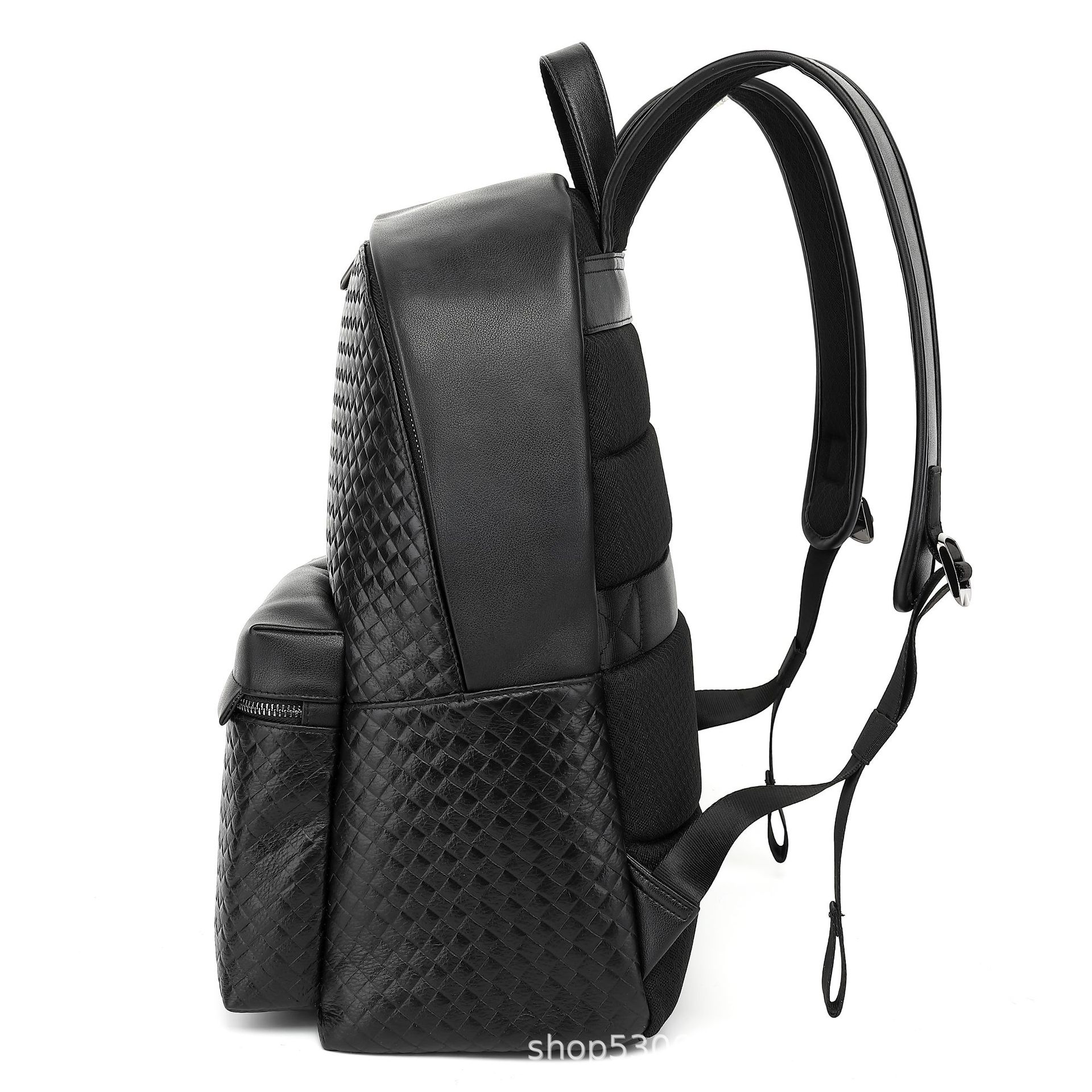 【正品】时尚编织压花真皮双肩包休闲旅行真皮背包