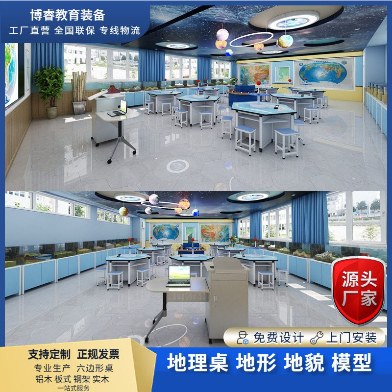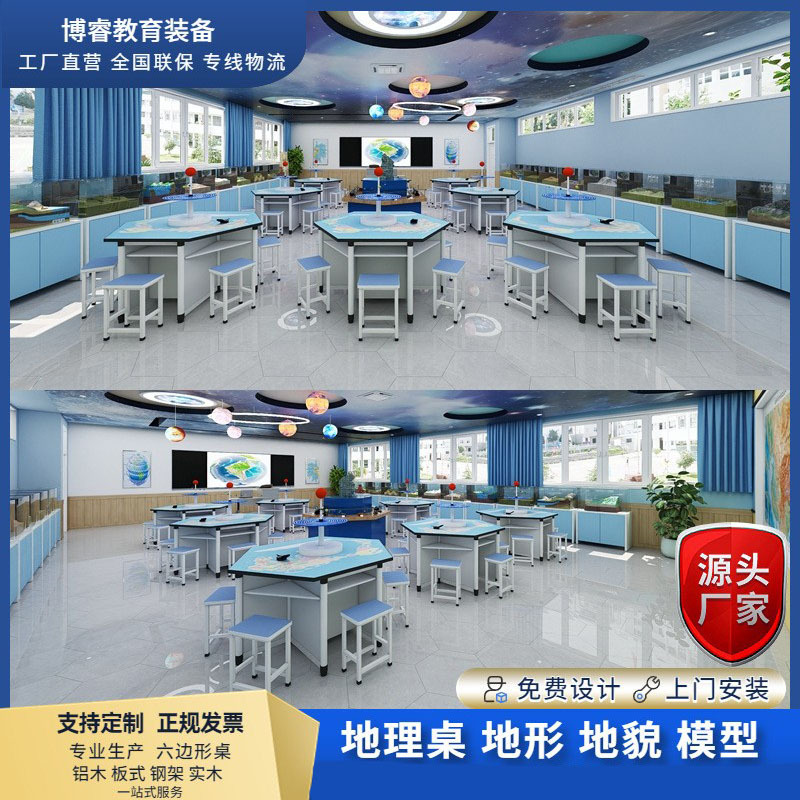 中小学六边形地理教室桌地形地貌模型创客教室铝木钢架新型注塑桌