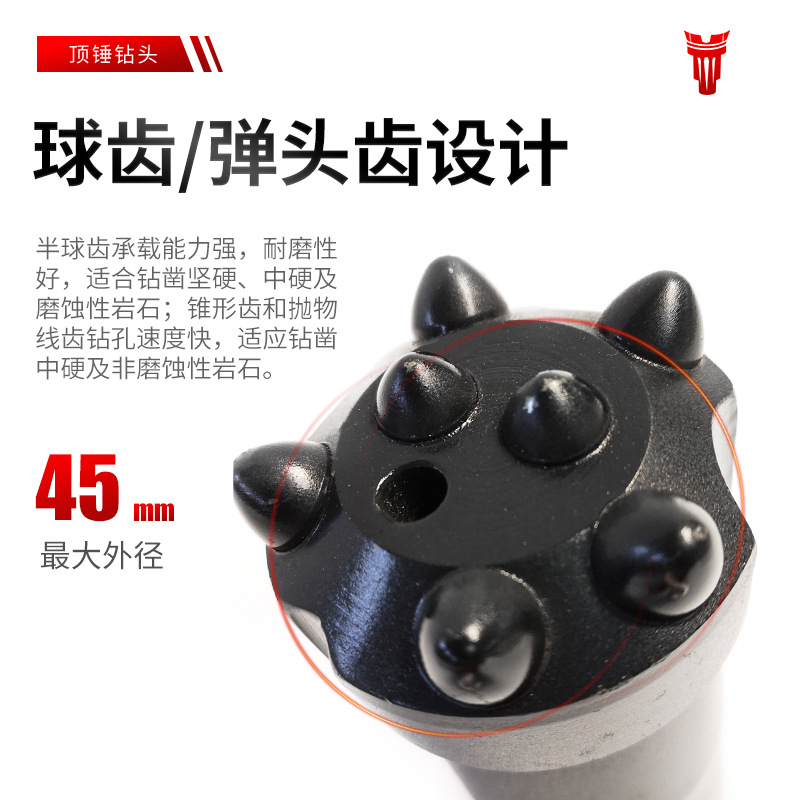 矿山凿岩机钻头采矿用钻头9颗珠45mm螺纹钨钢顶锤螺纹钻头 凿岩开