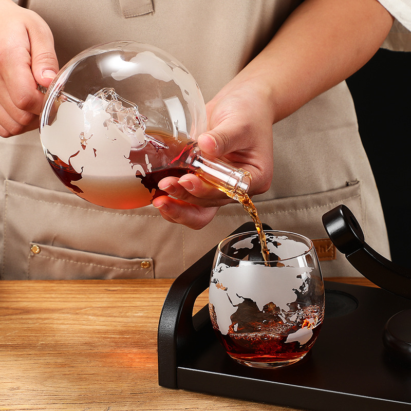 地球仪醒酒器长方架提手地球仪醒酒器酒架酒具地图酒杯