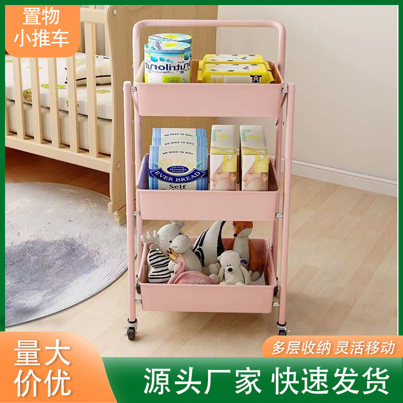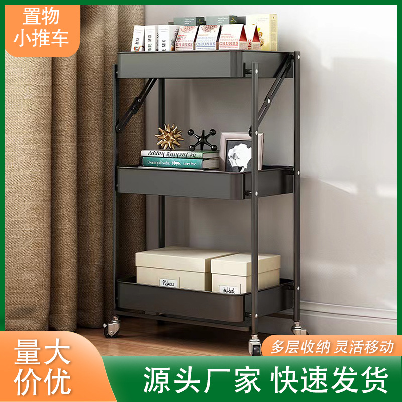 置物架厨房收纳置物架小推车 免安装置地式碳钢三层可折叠小推车