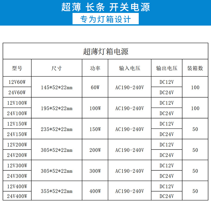 外形尺寸 | 195*52*22 | | 产品系列 | LED超薄灯箱系列 |