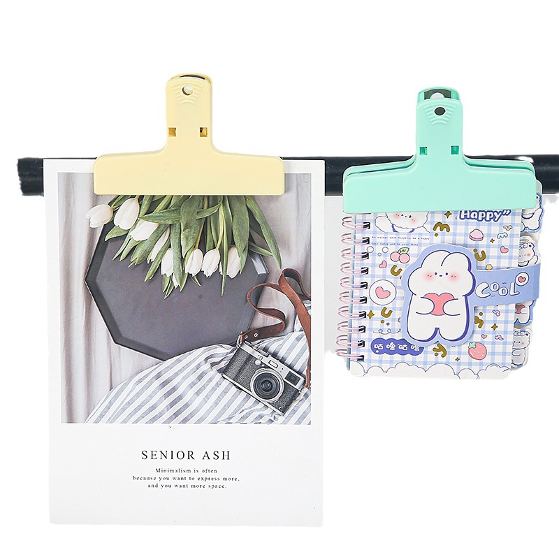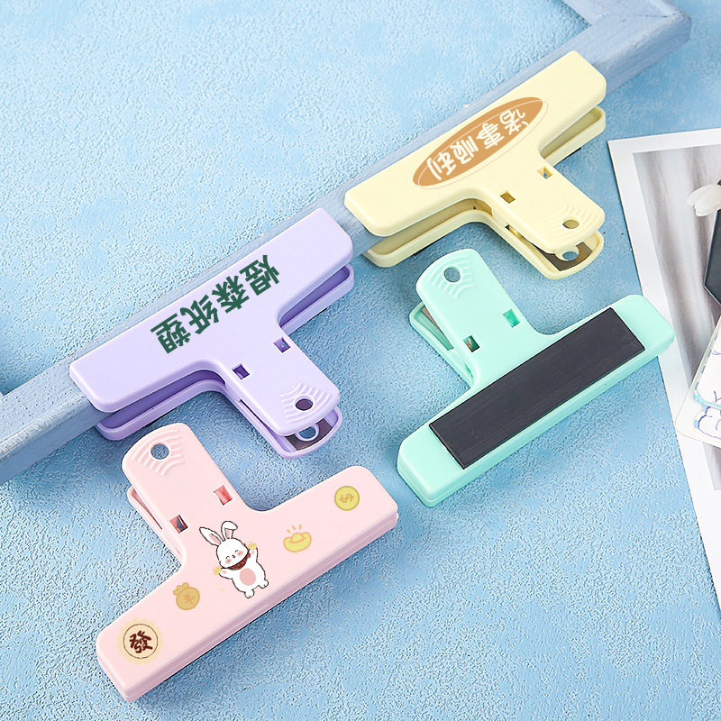 手帐票据夹子长尾夹ins彩色磁力塑料办公夹学生个性试卷夹封口夹