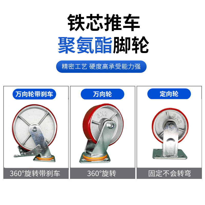 | 货号 | 重型聚氨酯脚轮铁芯PU | 用途范围 | 工业脚轮 运输 |