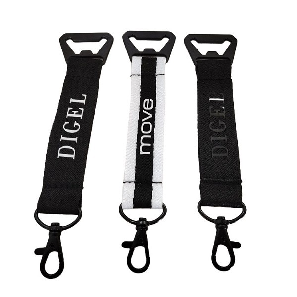 新款开瓶器涤纶钥匙扣挂绳个性定制织带钥匙扣便携黑色短带挂绳