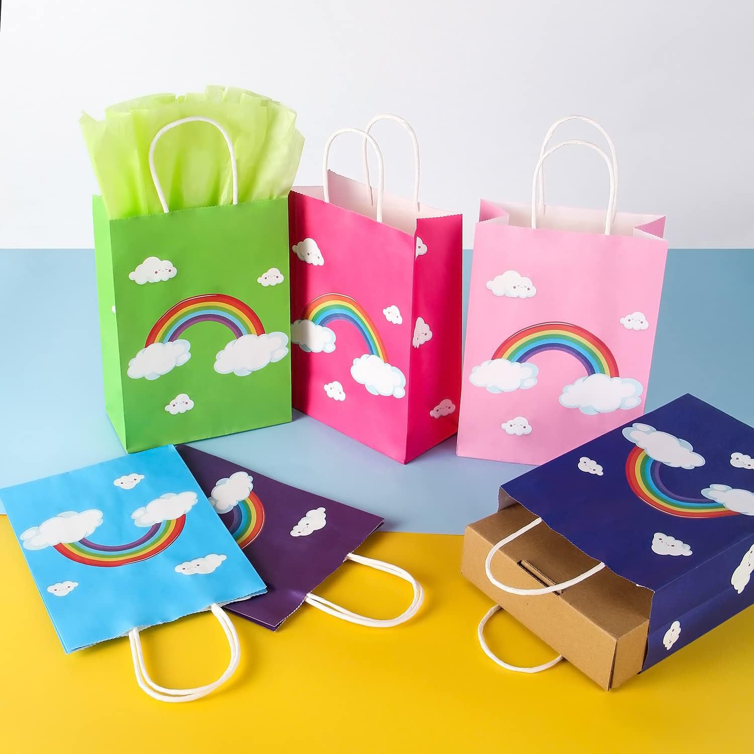 亚马逊彩虹款手提牛皮纸袋生日派对随手礼创意卡通礼品袋礼物袋子